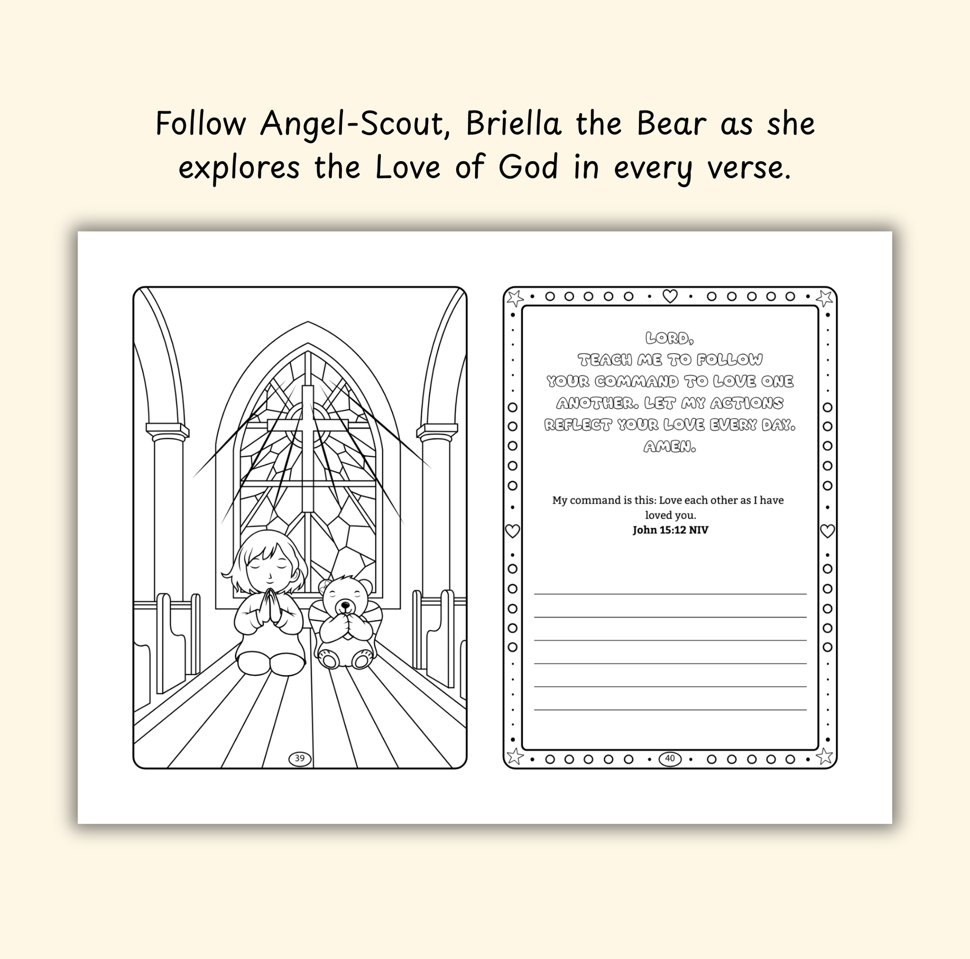 The Love of God – Coloring & Prayer Journal Featuring Angel-Scout, Briella the Bear | 35 Bible Verses, Prayers & Faith-Inspired Art | Buy One, Bless One — Pray It Forward
