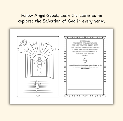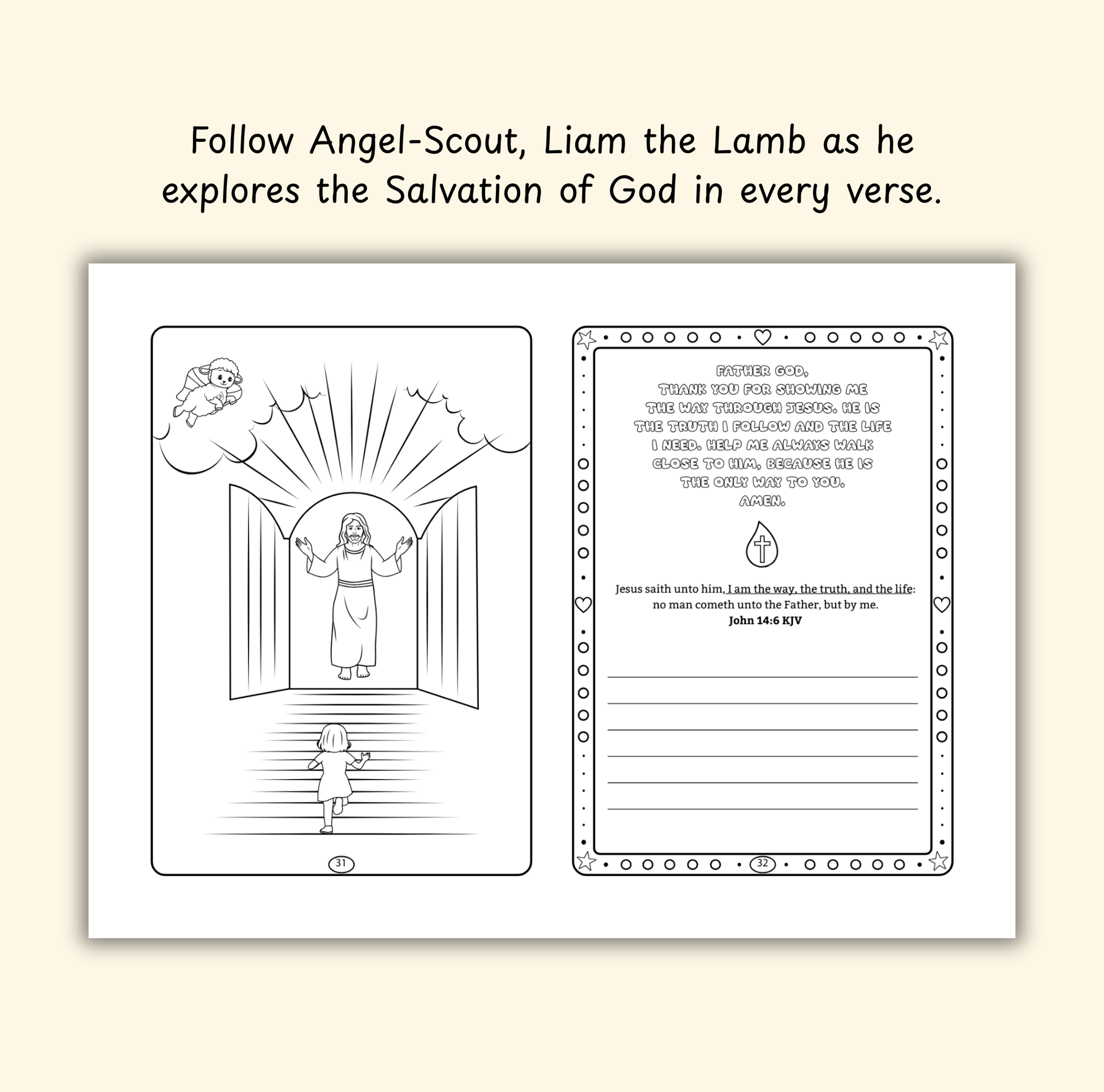 The Salvation of God – Coloring & Prayer Journal Featuring Angel-Scout, Liam the Lamb | 35 Bible Verses, Prayers & Faith-Inspired Art | Buy One, Bless One — Pray It Forward